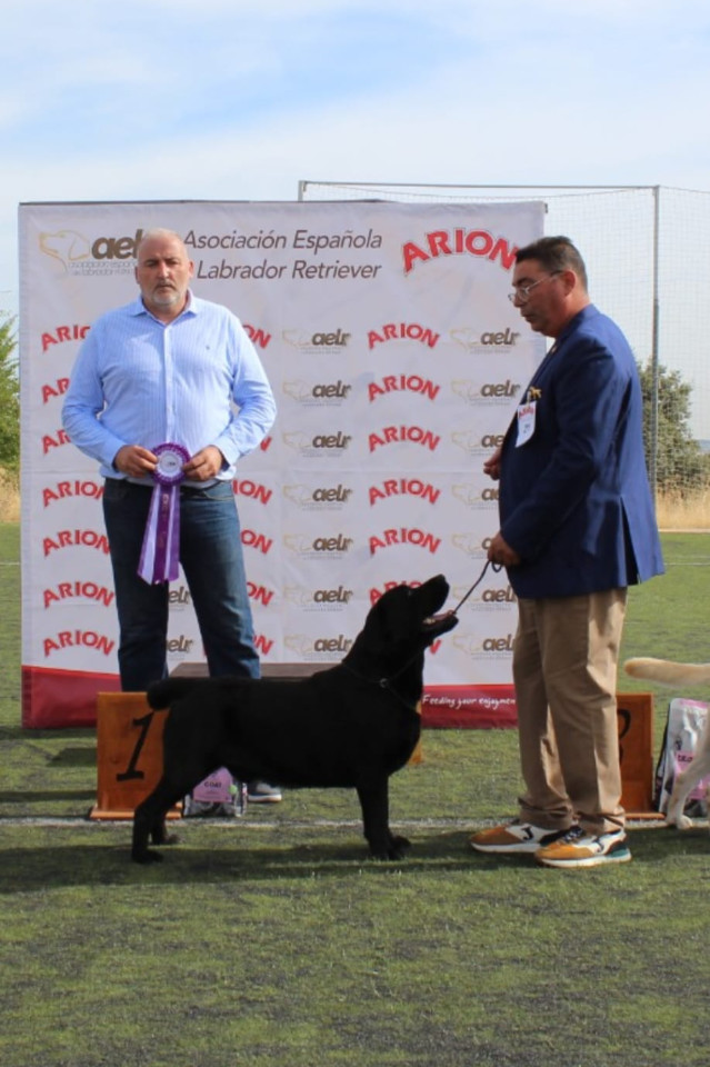 Hoy nuestro chico consiguió el Punto Obligatorio para el Campeonato de España de la RSCE en la XVIII Exposición Monográfica de la Asociación Española del Labrador Retriever, celebrada el día 13 de septiembre de 2025 en Sevilla La Nueva (Madrid) con 84 Labradores inscritos.